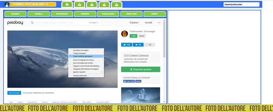 Discorso completamente diverso per le immagine NON NOSTRE, per evitare Equivoci ho inserito nel tool una serie di siti che propongono immagini free con licenza di riutilizzo.
