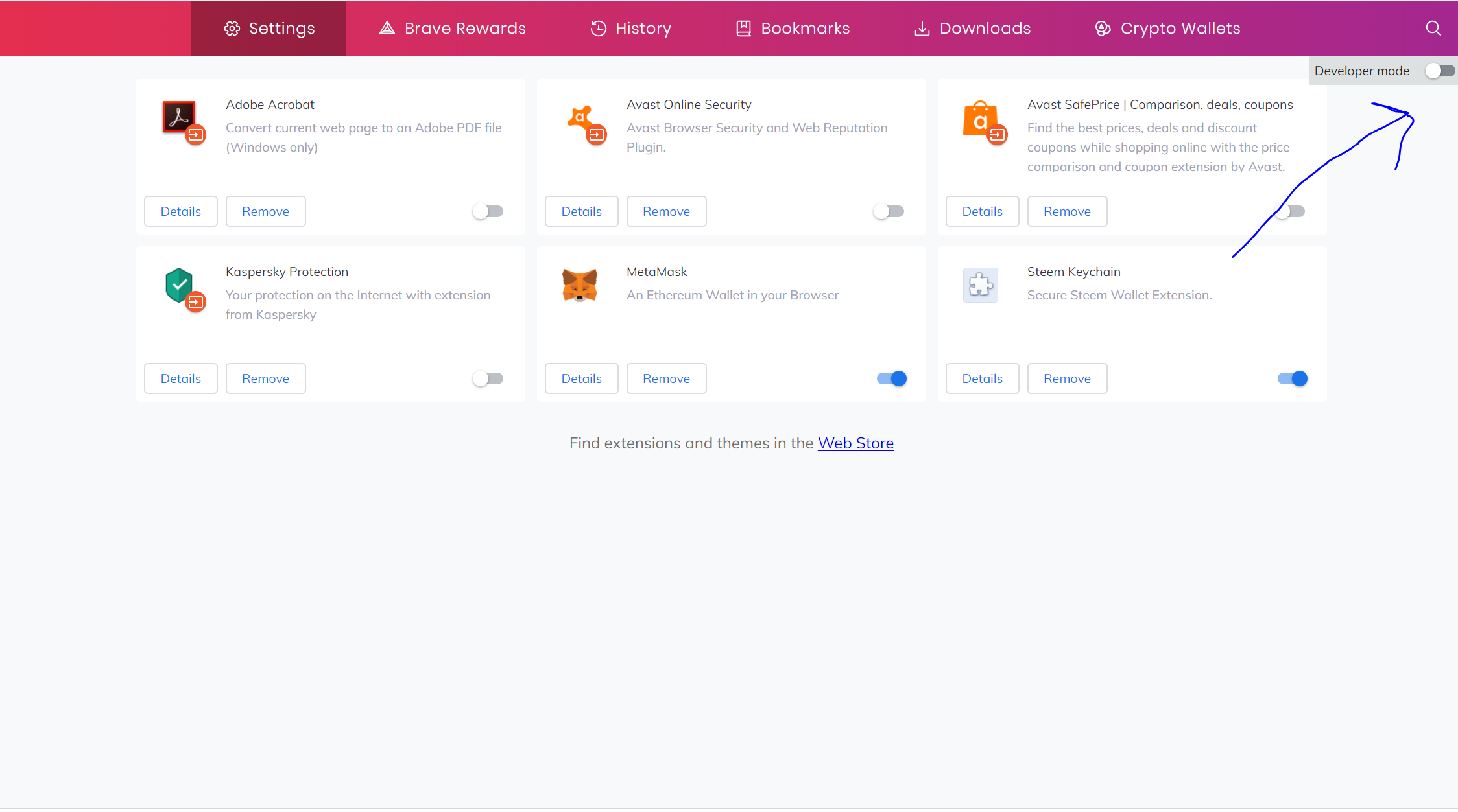 accendere la "developer mode" su brave, andando in "extensions" e poi cliccando su questo tasto:
