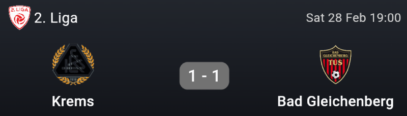 At home against Bad Gleichenberg, a side well within our reach, things get complicated when we go down to ten men in the 35th minute. We fall behind early in the second half but never give up, and only in the 93rd minute do we manage to level it: a 1–1 that leaves some regret but, given how it was going, is better than nothing.