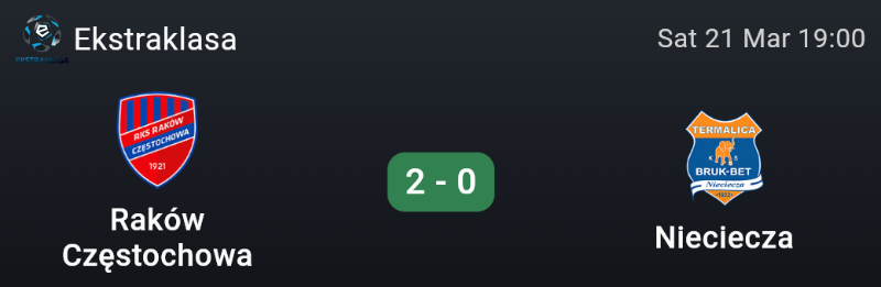 Archiviata la sconfitta in Champions, c’è voglia di riscatto e questa volta si vede: sul campo del Nieciecza, neopromossa partita forte ma in evidente calo, giochiamo con autorità e finalmente torniamo a far valere il nostro peso specifico. La vittoria diventa ancora più pesante grazie alla contemporanea sconfitta del Korona Kielce, che ci riporta a un solo punto dalla vetta e rimette il Raków pienamente nel discorso titolo.