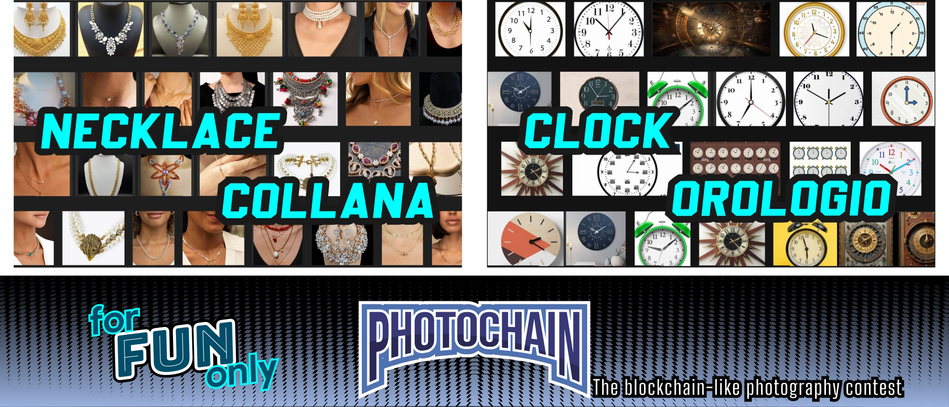 Barabambambam! The turnout was huge, with a big explosion in the number of entries: eleven, this week. It was tough to assign the prizes because all the entries represented the key subjects in a surgical way. I hope you will forgive me for not having included you among the winners or honorable mentions. I leave you with a heartfelt thank you, both to those who participated and to those who spent their time trying to do that. But, now, let's move on to the new edition, with an unusual pair of key subjects, although the individual elements aren't an absolute novelty. I'm talking about Necklace and Clock, two elements that have already appeared but are not exactly so common. I hope that the new edition can follow the results of the previous one. That said, I have nothing else to add. I leave everyone with my most heartfelt...