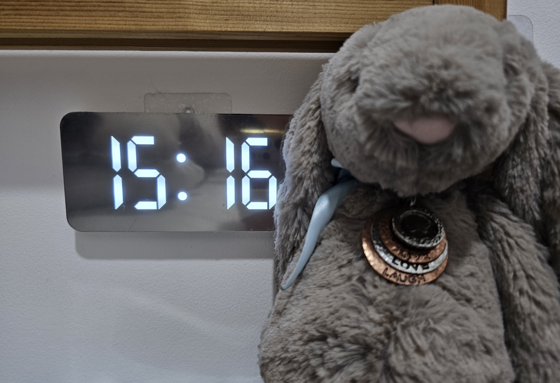 My clock and necklace worn on my plushie. Personal subject- plushie