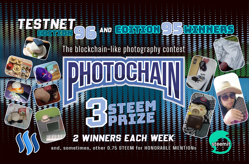 In questo post annuncerò i 2 (due) vincitori della Novantacinquesima edizione della versione TESTNET del concorso. Entro le prossime 72 ore ricompenserò entrambi con 1.5 STEEM - come spiegato in precedenza - e pubblicherò nella sezione commenti della NOVANTACINQUESIMA EDIZIONE.