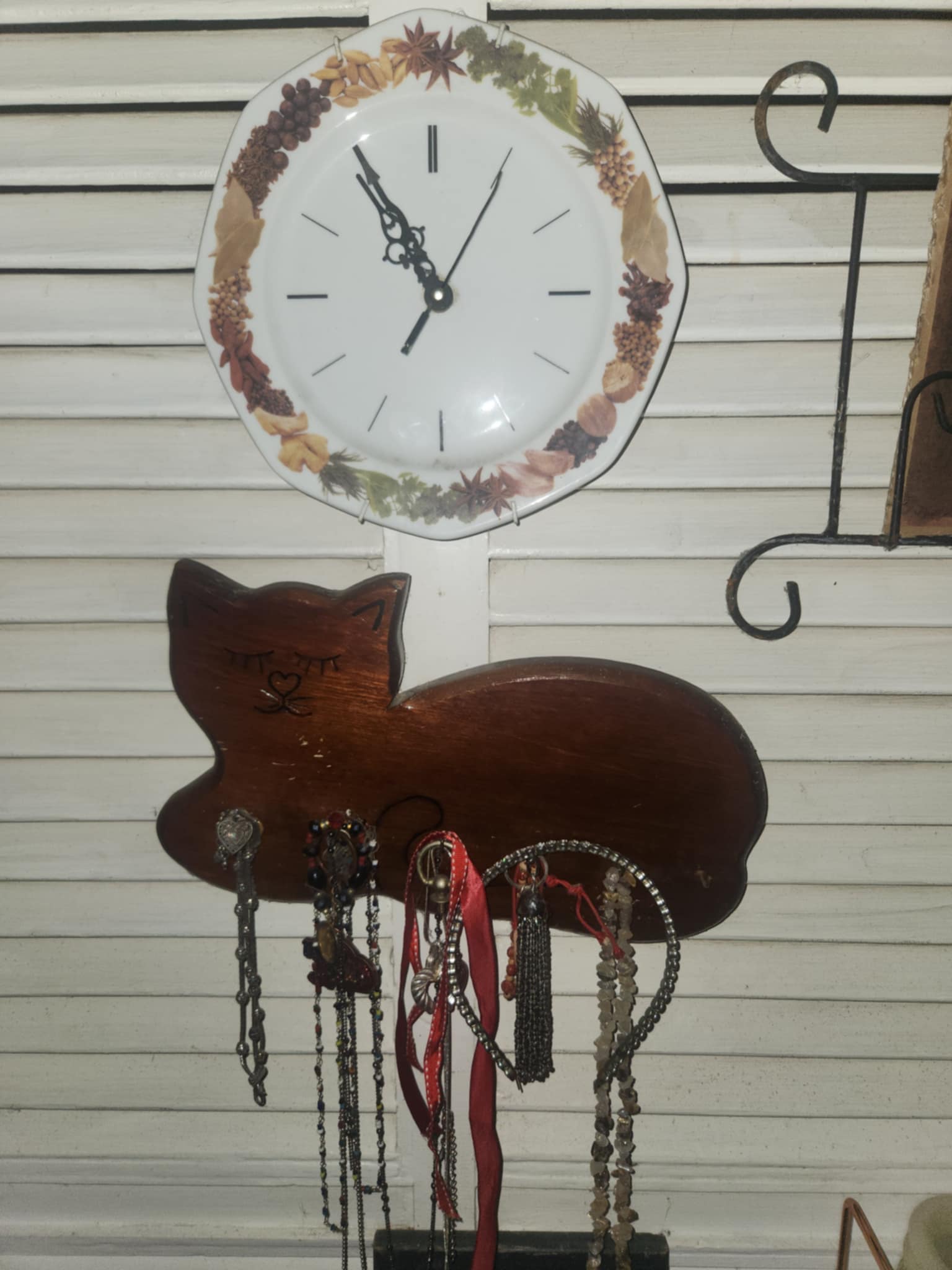 No, I don't have a clock similar to yours but I was about to enter a photo similar to what you did with your entry where you strung the necklace across the clock. Here's what I mean but this is not my entry because I changed my mind.