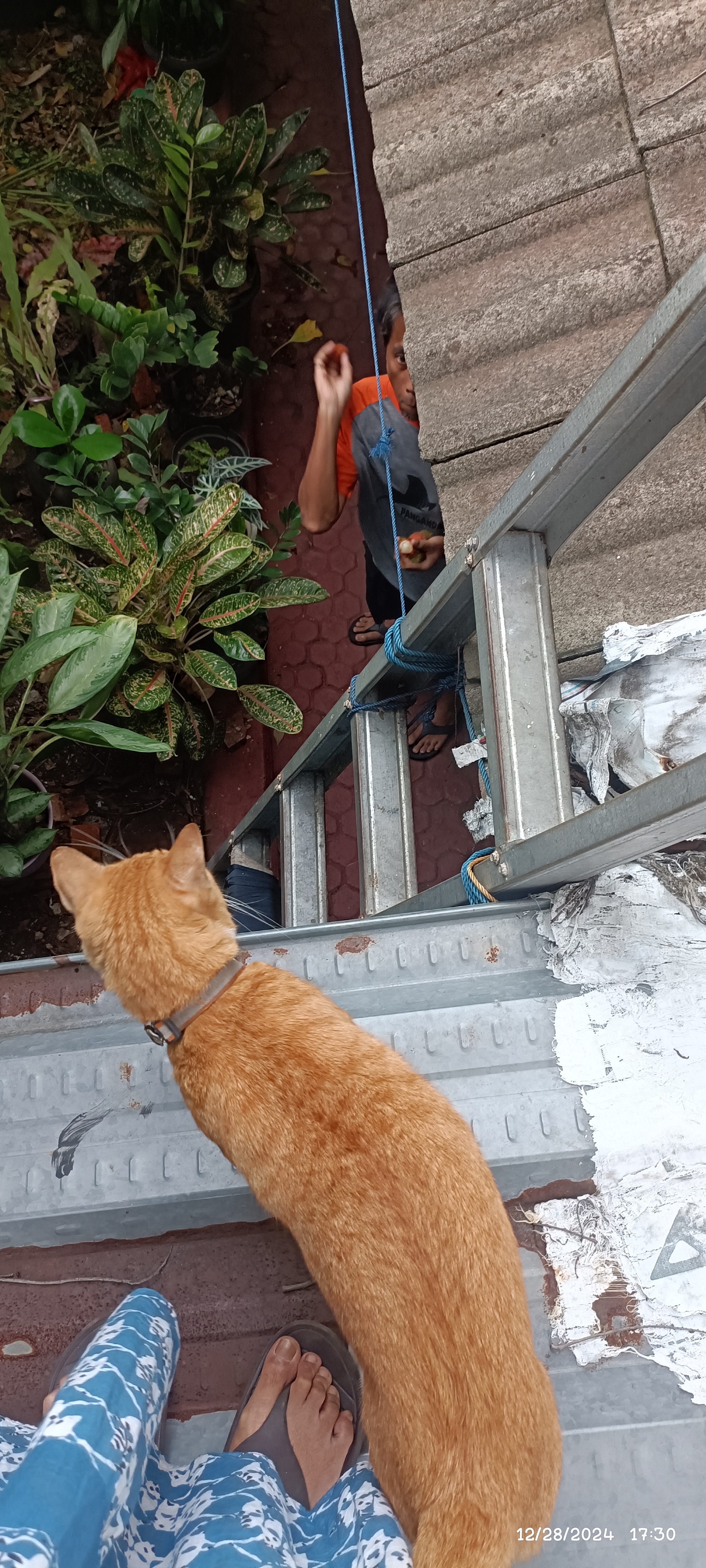 What a coincidence 🤣 I was picking up my Rambutan by climbing up to the roof and my fur brother followed us and he's waiting for me to come down before he catches up 😂