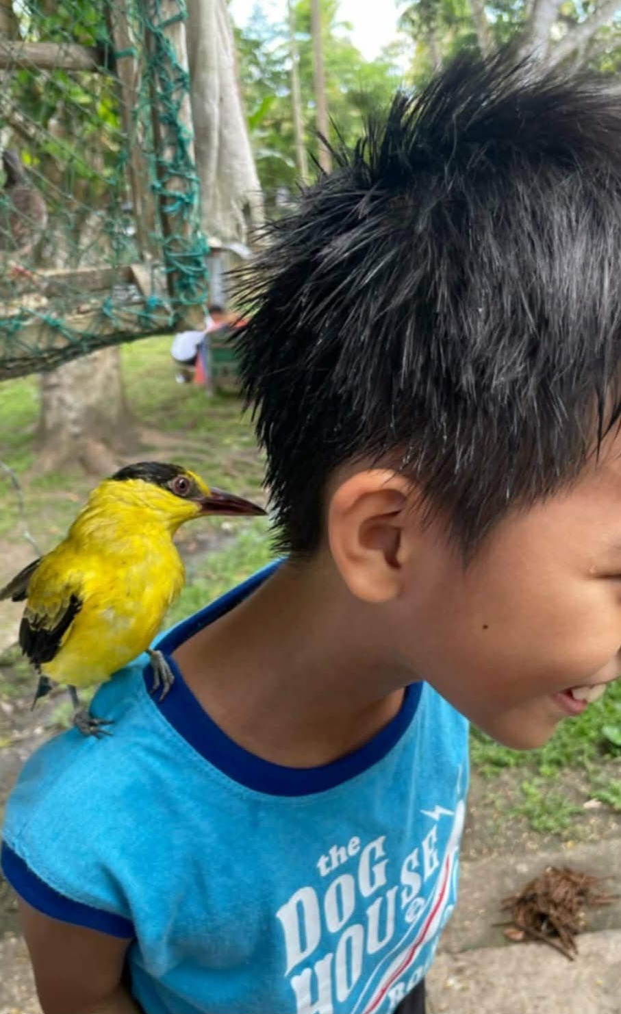 Burung yang sangat cantik dan sangat jinak dengan cucu anda, saya suka dengan warnanya