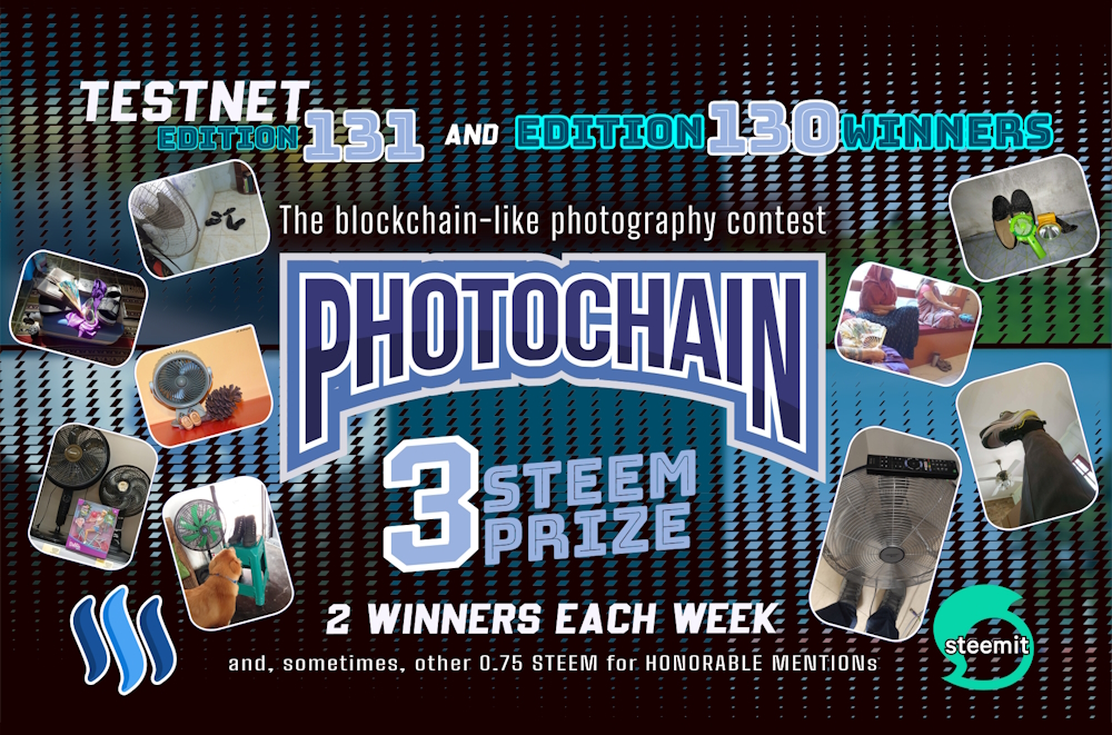 Questa è la Centotrentunesima edizione della Photochain TESTNET su Steem. La Photochain Challenge è un concorso fotografico dal funzionamento di base simile a quello di una blockchain, cioè "a catena". Se vuoi saperne di più, leggi l'Edizione ZERO della Photochain TESTNET su STEEM. In quel post spiegavo il funzionamento del concorso e come poter parteciparvi.
