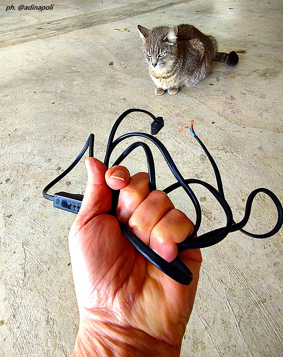 Here I come with the entry of the week. With pet and wire. This is my Meme kitty, always next to my son's computer. Whether he's working online or playing, this kitty always wants to be close to your hands or feet.