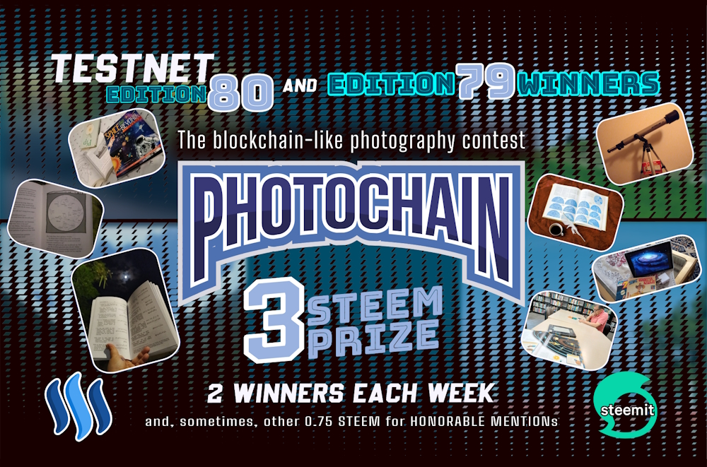 Questa è la Ottantesima edizione della Photochain TESTNET su Steem. La Photochain Challenge è un concorso fotografico dal funzionamento di base simile a quello di una blockchain, cioè "a catena". Se vuoi saperne di più, leggi l'Edizione ZERO della Photochain TESTNET su STEEM. In quel post spiegavo il funzionamento del concorso e come poter parteciparvi.