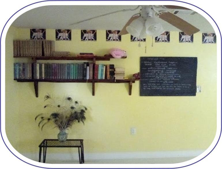con una parete arredata in modo certosino.