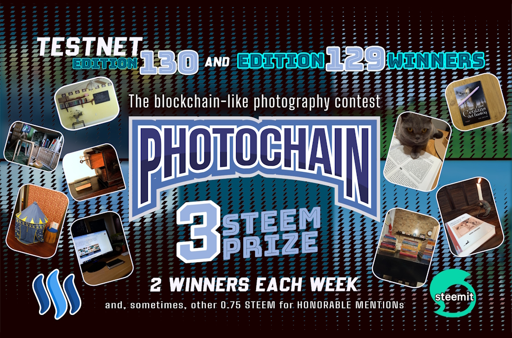 Questa è la Centotrentesima edizione della Photochain TESTNET su Steem. La Photochain Challenge è un concorso fotografico dal funzionamento di base simile a quello di una blockchain, cioè "a catena". Se vuoi saperne di più, leggi l'Edizione ZERO della Photochain TESTNET su STEEM. In quel post spiegavo il funzionamento del concorso e come poter parteciparvi.