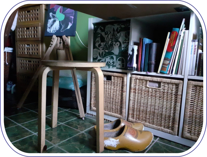 Creo que aquí se ve más o menos todo lo que necesito. Material para dibujar, un libro con papel, una bufanda, gafas de sol, chanclas, tapones para los oídos (en una cajita). 🤣
