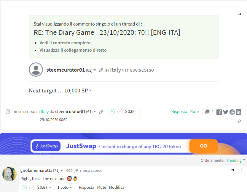 Qui 👇 lo screenshot di quella conversazione (sponsored by JustSwap 😄)