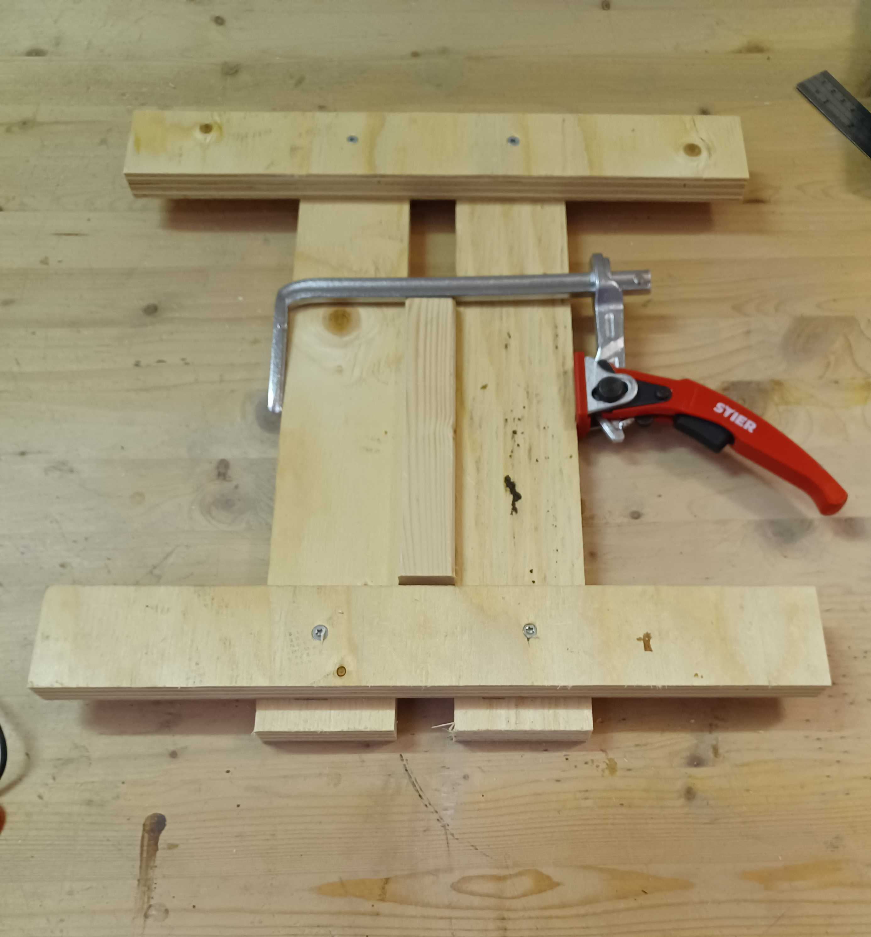 Per prima cosa dobbiamo stabilire quale sarà la grandezza massima di fresatura, e dopo aver ricavato uno spezzone di questo materiale (l'importante è che sia perfettamente squadrato), e lo useremo come dima per fissare i 4 listelli con 4 viti in modo che tutto sia perfettamente equidistante.