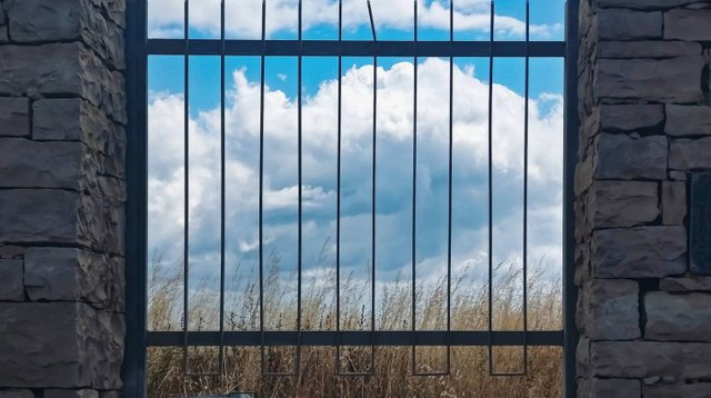 Da un cancello che da accesso ad un terreno incolto nasce una bellissima metafora, al di qua siamo intrappolati in una gabbia, al di là del cancello le nuvole, la libertà.