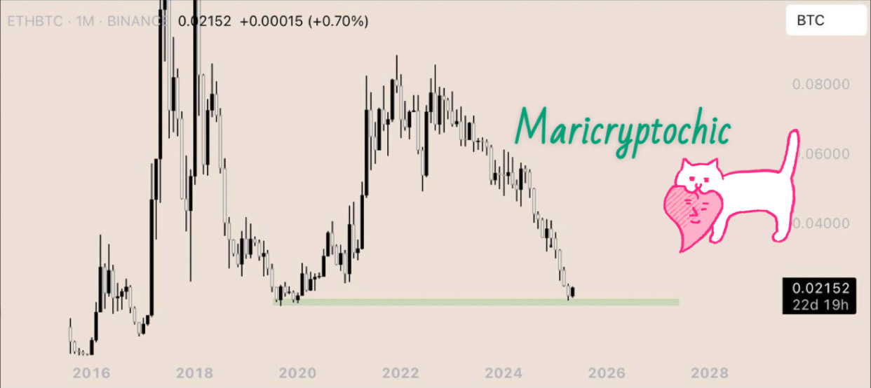 In the first chart (ETHBTC) shared we see how the structure has been bearish for 5 years now, so if we had reversed here there would be a long way to go.
