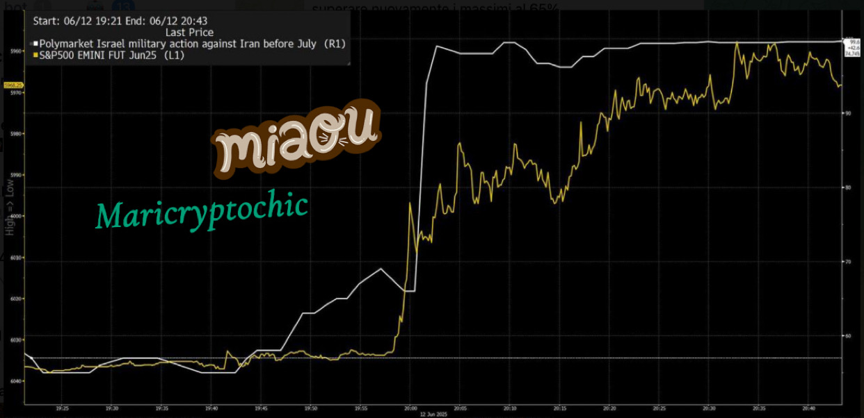 Una curiosità degna di nota, su Polymarket (piattaforma decentralizzata di scommesse su eventi futuri) c'era la possibilità di scommettere anche su un possibile attacco di Israele all'Iran.