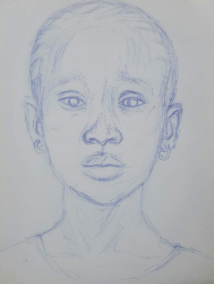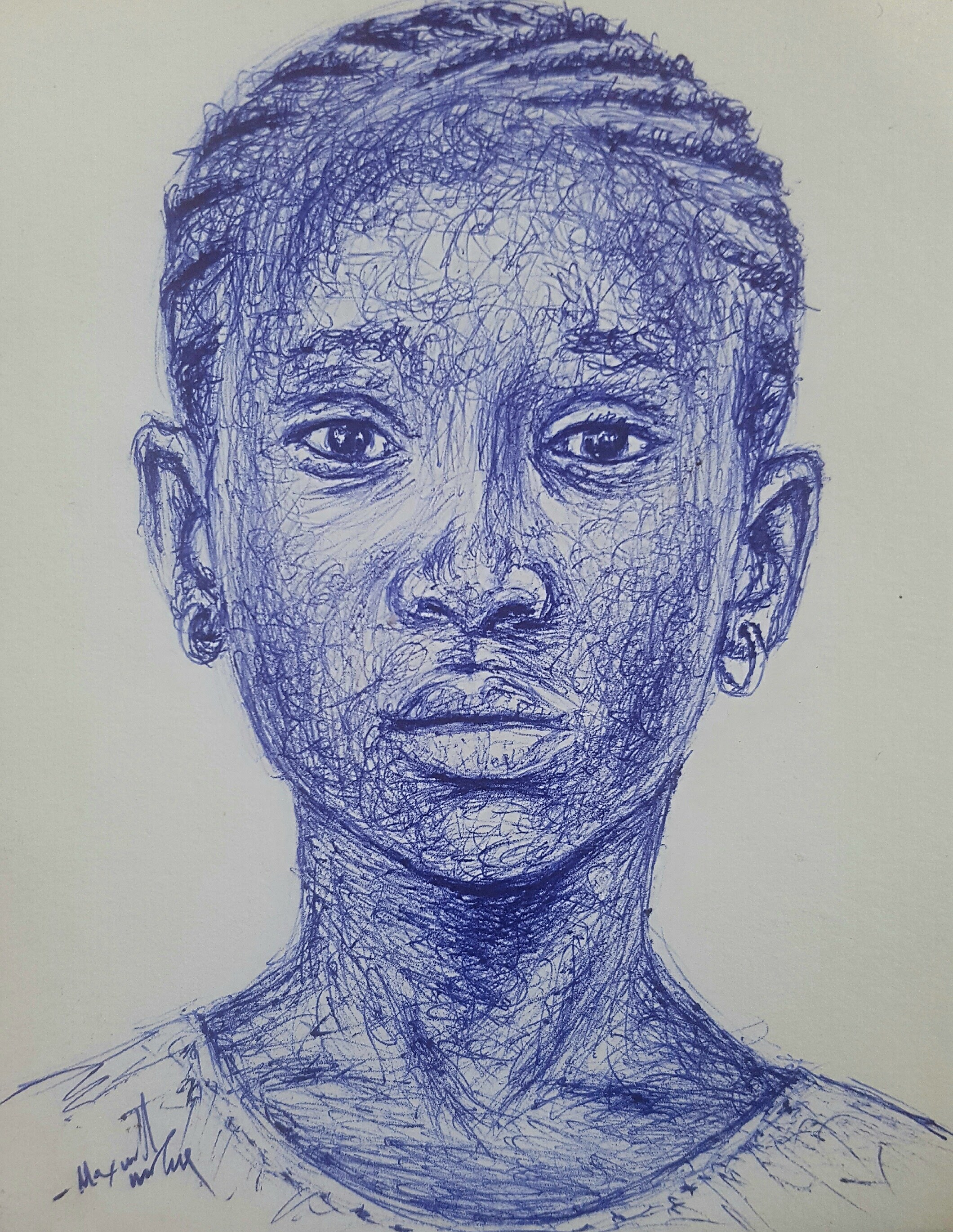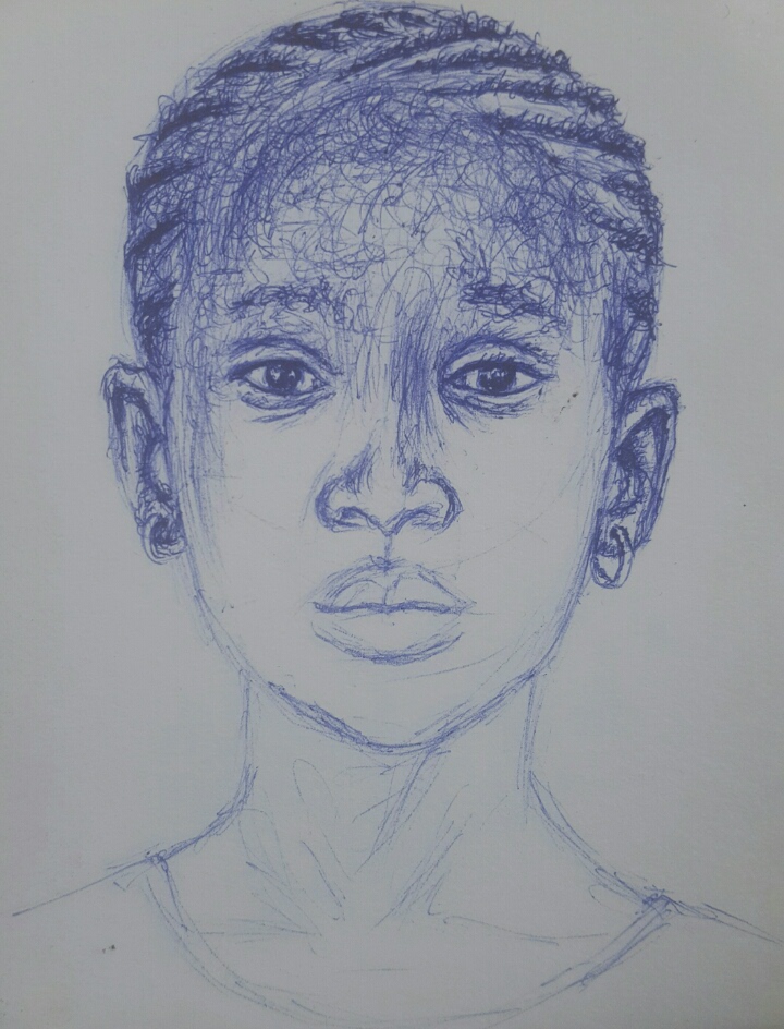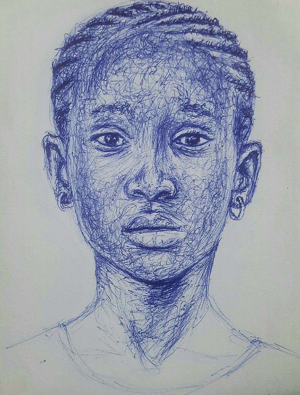 The portrait was done with a blue ballpoint pen on a cardboard paper. I used scribble technique to create this piece.