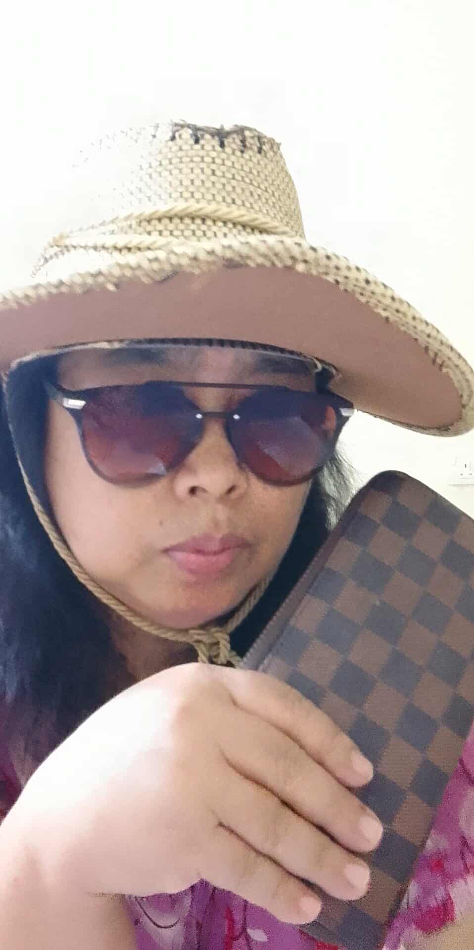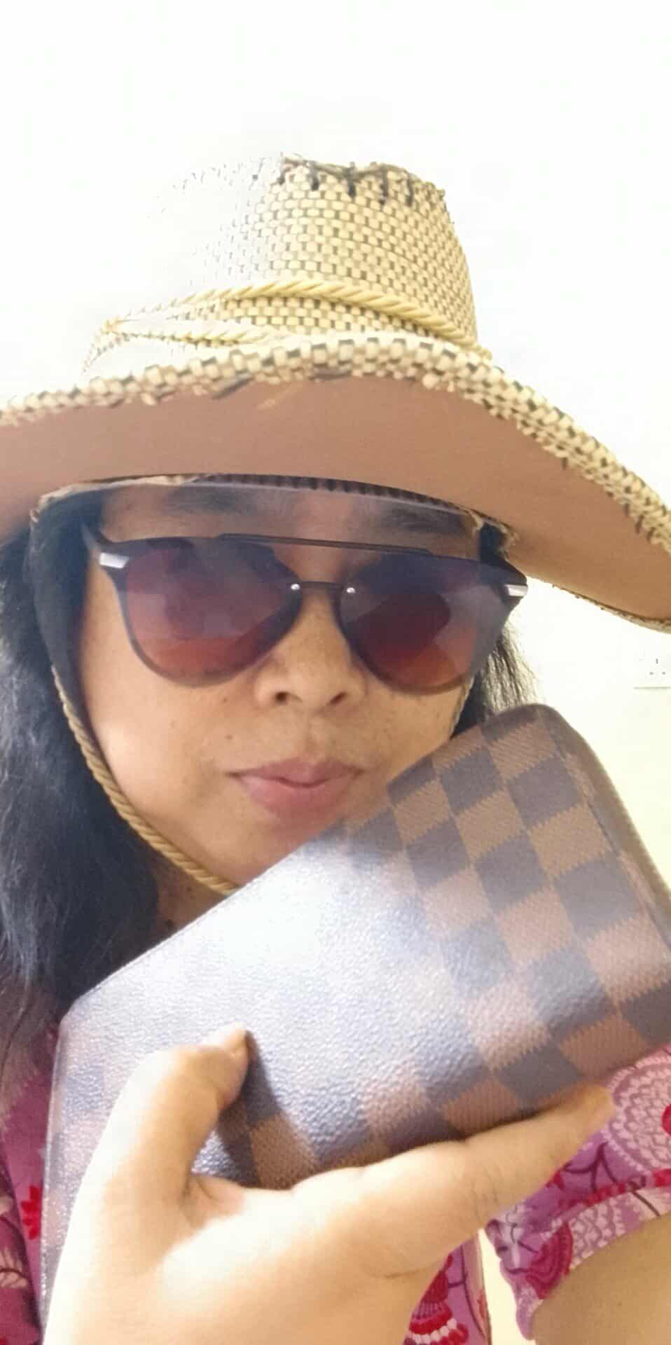 I was wearing my hat late night for this contest and try locatingy wallet which I never use for a long time. It was given to me by my employer's daughter.. I have my hat when I go out walking under the heat of the sun. Wearing a sunglass at night so weird but because of this challenge I made it.