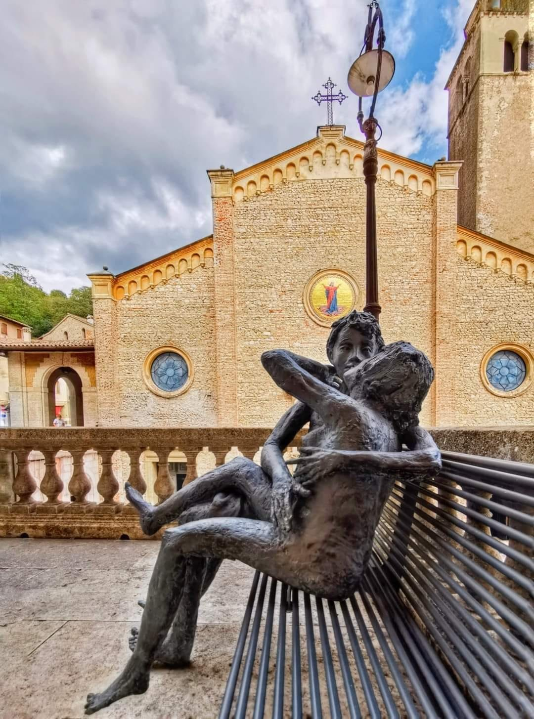 Camminando ho trovato una panchina dove c'era una scultura in metallo di due persone che si baciavano, molto carina peccato che come al solito non c'era scritto sopra e non si conosceva l'autore di questo capolavoro, mi sarebbe piaciuto conoscere l'autore anche perché Dipingo anche di tanto in tanto come puoi vedere nell'altro post.