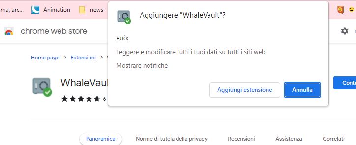 Per aggiungere l'estensione al tuo pc, vai su WHALEVAULT