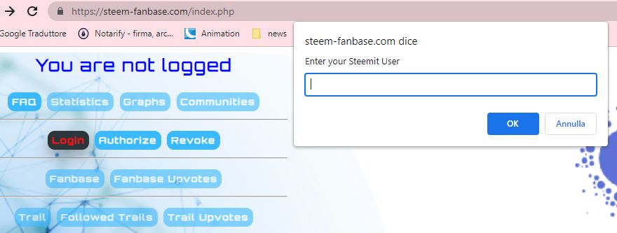 Si aprirà una finestra in cui inserire il proprio username di Steemit e premere "ok".