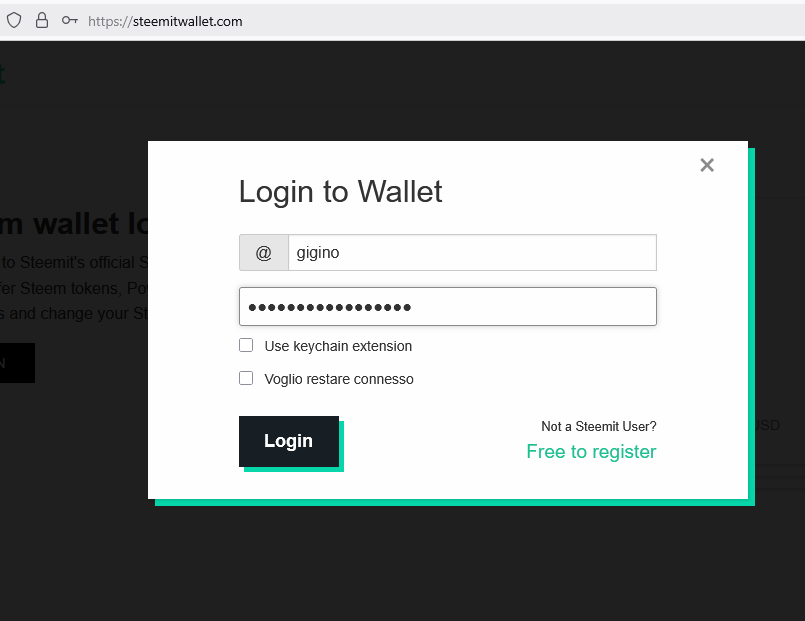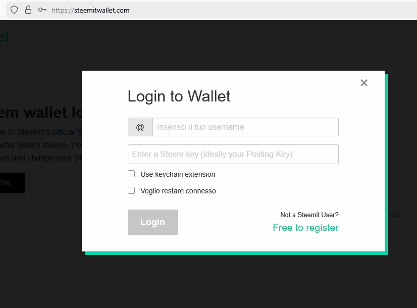 Click on OK, and the Steemit login dialog will appear.