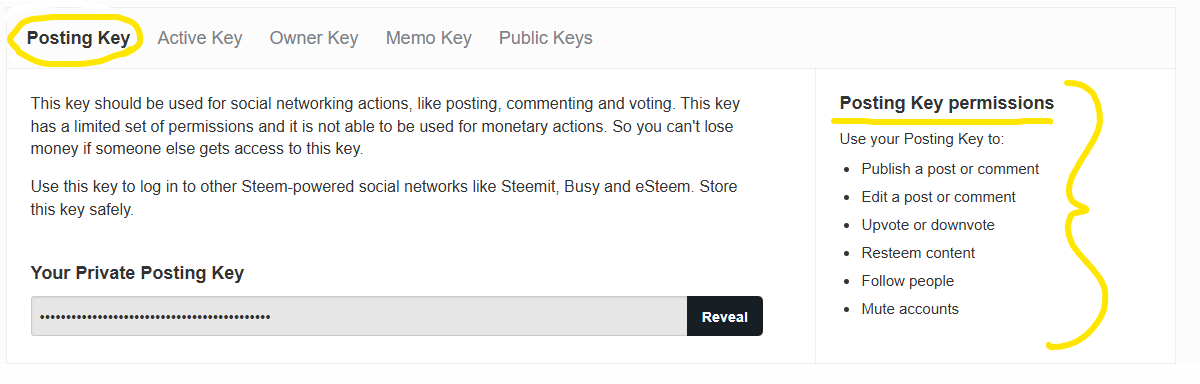In our example, the "POSTING KEY" is the key used to post or comment, vote, and reesteem.