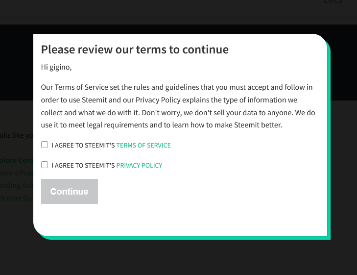 Now, you need to LOGIN by entering the account name and the POSTING KEY. Once confirmed, a dialog window will appear with the platform’s terms of service.