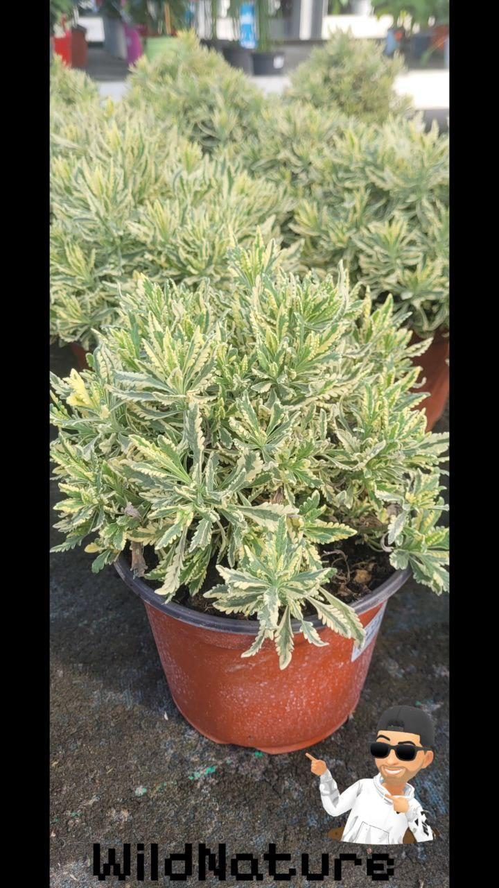 It appears as a small evergreen shrub with woody stems at the base and herbaceous branches. The leaves, from which it gets its name, are grayish-green, narrow, elongated, and characterized by finely toothed edges. In addition to their decorative shape, the leaves release a strong camphor-like aroma when rubbed, typical of lavender.