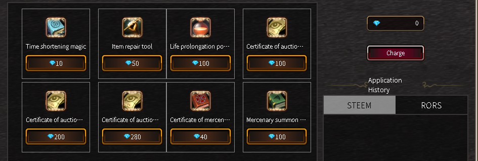 Lets take a look at the other symbols. Also in the upper right corner you find these two. Gold and RORS tokens. Sadly we dont have any yet but we will dig into it later once we get there.