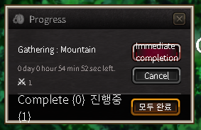 Side note: You can click on "Immediate completion". If you click on that, a window will appear where it says that you can use an item called "time shortening magic". I received two of these by ingame notification. I dont know if everybody gets that cause i didnt receive that directly from the beginning.