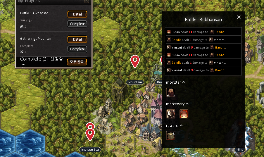 Our hero succesfully gathered 11 units of wood. Lets see how our fight in Bukhansan worked out.