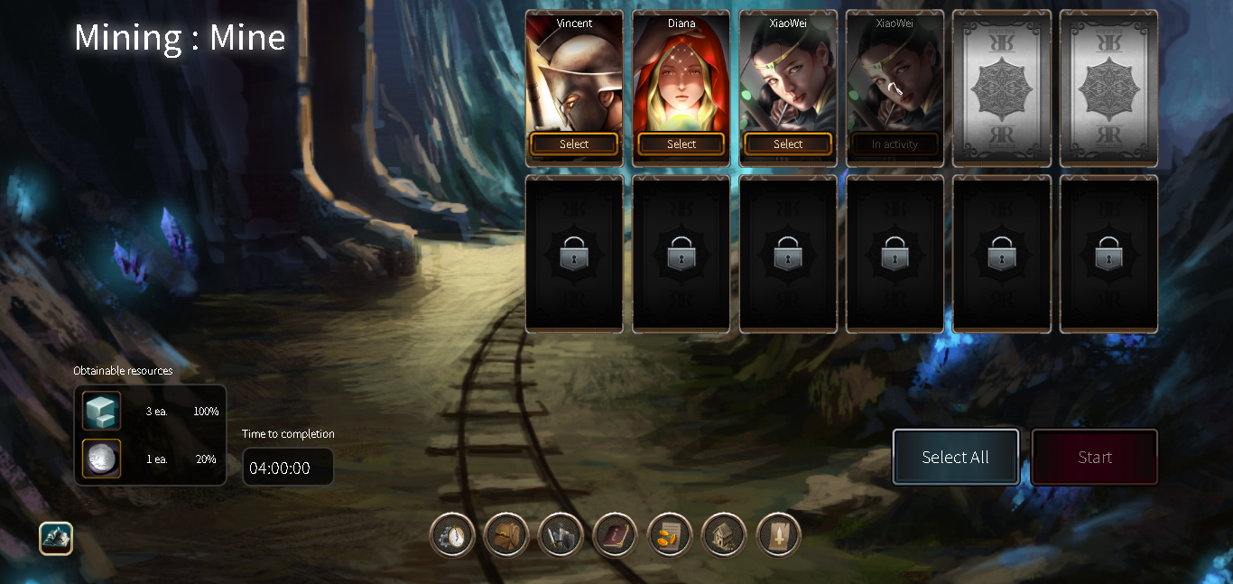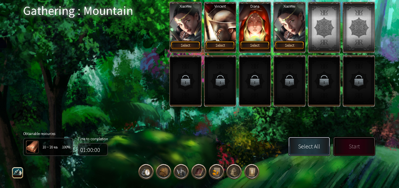 Shown in the picture in this location we can gather wood. To do that we have to select at least on of our heroes and than click on the start button. Also we can see that the hero will be gone for one hour to finish this task.