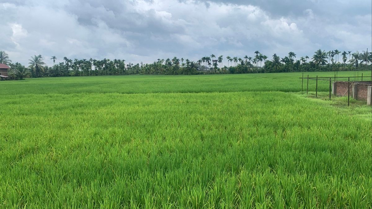 the view of the rice fields and roads in the village which are still wet with rainwater, looks cool with the characteristics of a green village that makes anyone who enjoys it feel cool. #iweb3 #krsuccess #wormhole3