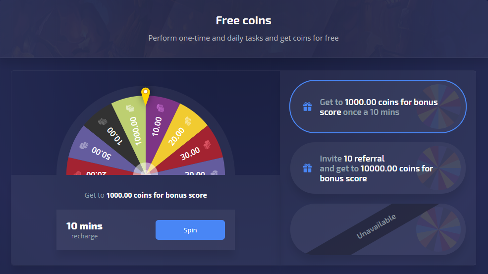 With our lucky wheel, users can win up to 200 free bonus coins every 10 minutes.