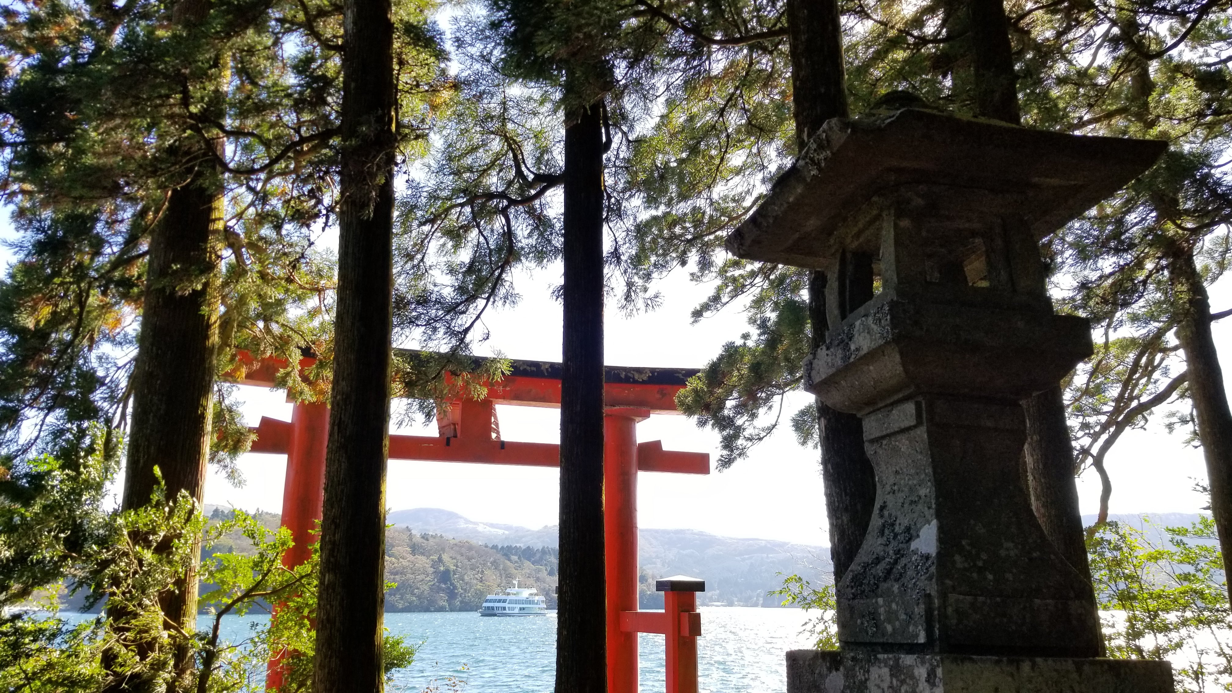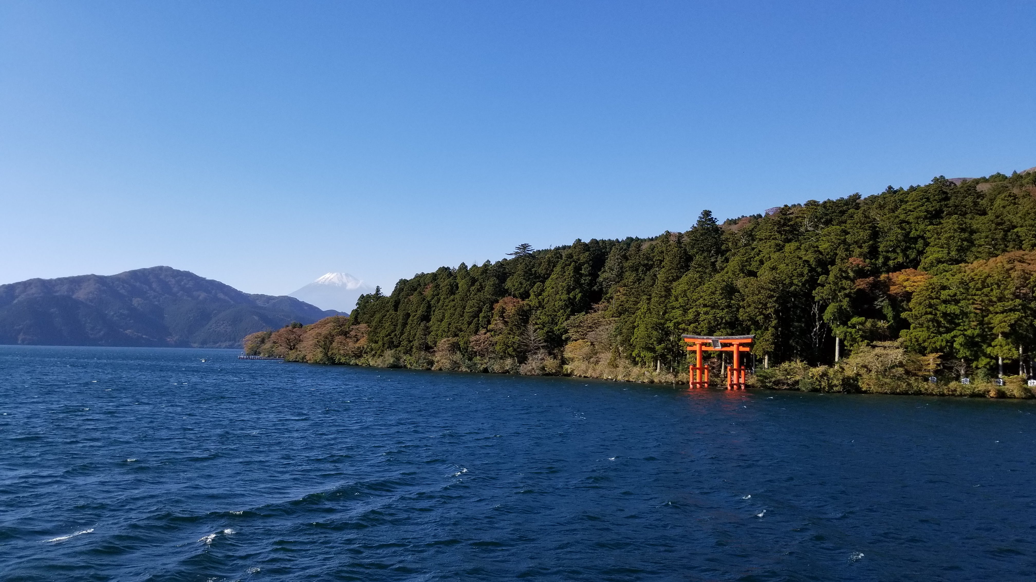 We took a boat ride across the lake and to a tram. You can see Mt. Fuji and the orange shrine near the shore.