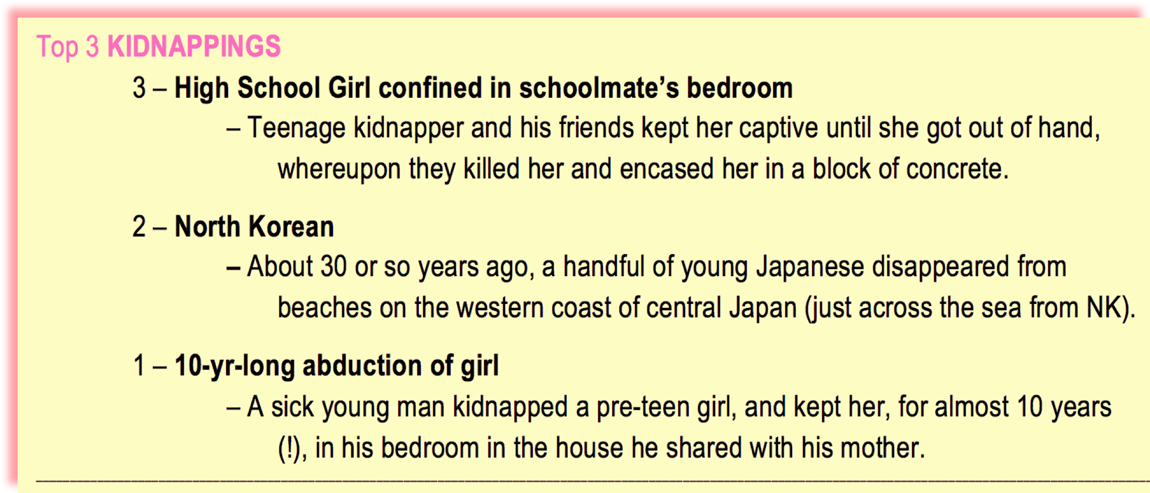 23 – Top 3 Kidnappings (Right-click to see my original post) "Those sickos seem more deranged than your typical psychopath in any other country."