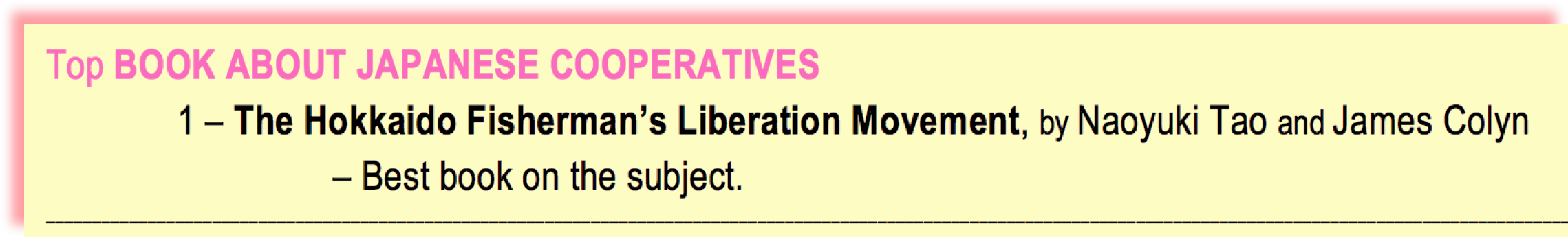 45 – Top Book about Japanese Cooperatives (Right-click to see my original post) "The poor people of Hokkaido’s fishing villages in post-war Japan struggled to free themselves from the clutches of the usurious money lenders."