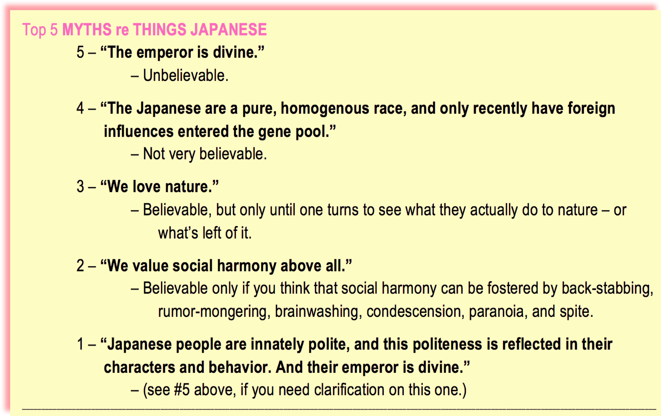 7 – Top 5 Myths re Things Japanese (Right-click to see my original post) "It’s safe to say that Japan’s population does not comprise only pure Japanese.”