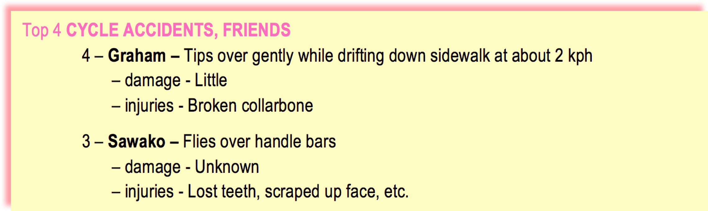 40 – Top 4 Cycle Accidents, Experienced by Friends (Right-click to see my original post) "These accidents provided me and my friends with plenty of amusement."