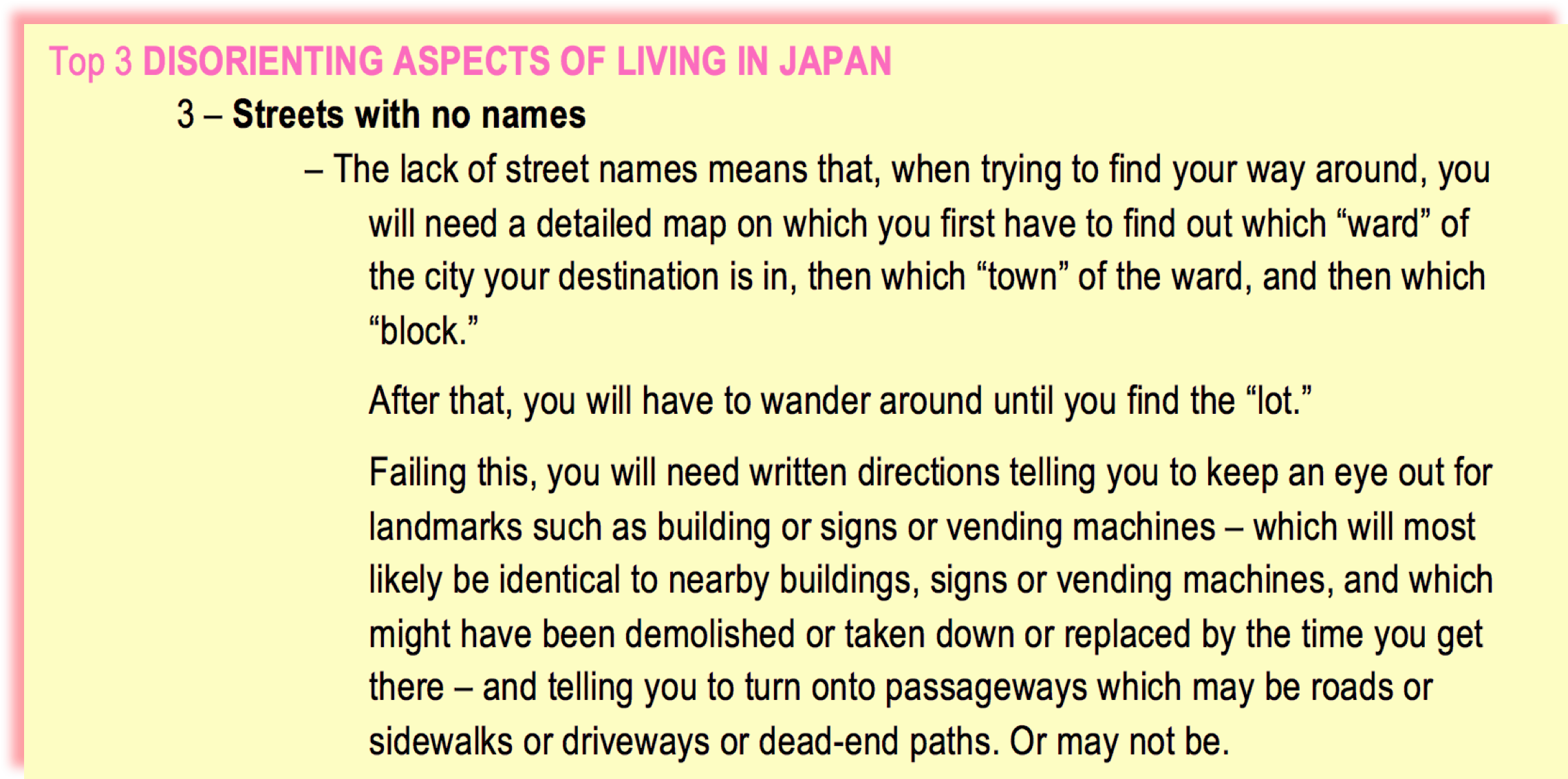 10 – Top 3 Disorienting Aspects of Living in Japan (Right-click to see my original post) "Where the streets have no name."