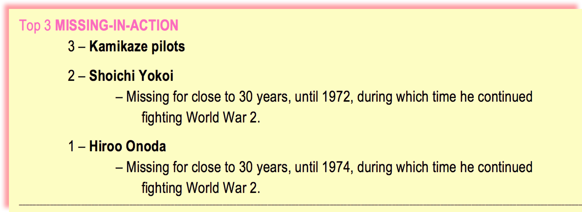 Top 3 Missing-in-Action (Notes from Under the Tatami Mats–22 … My Adventures in Japan)