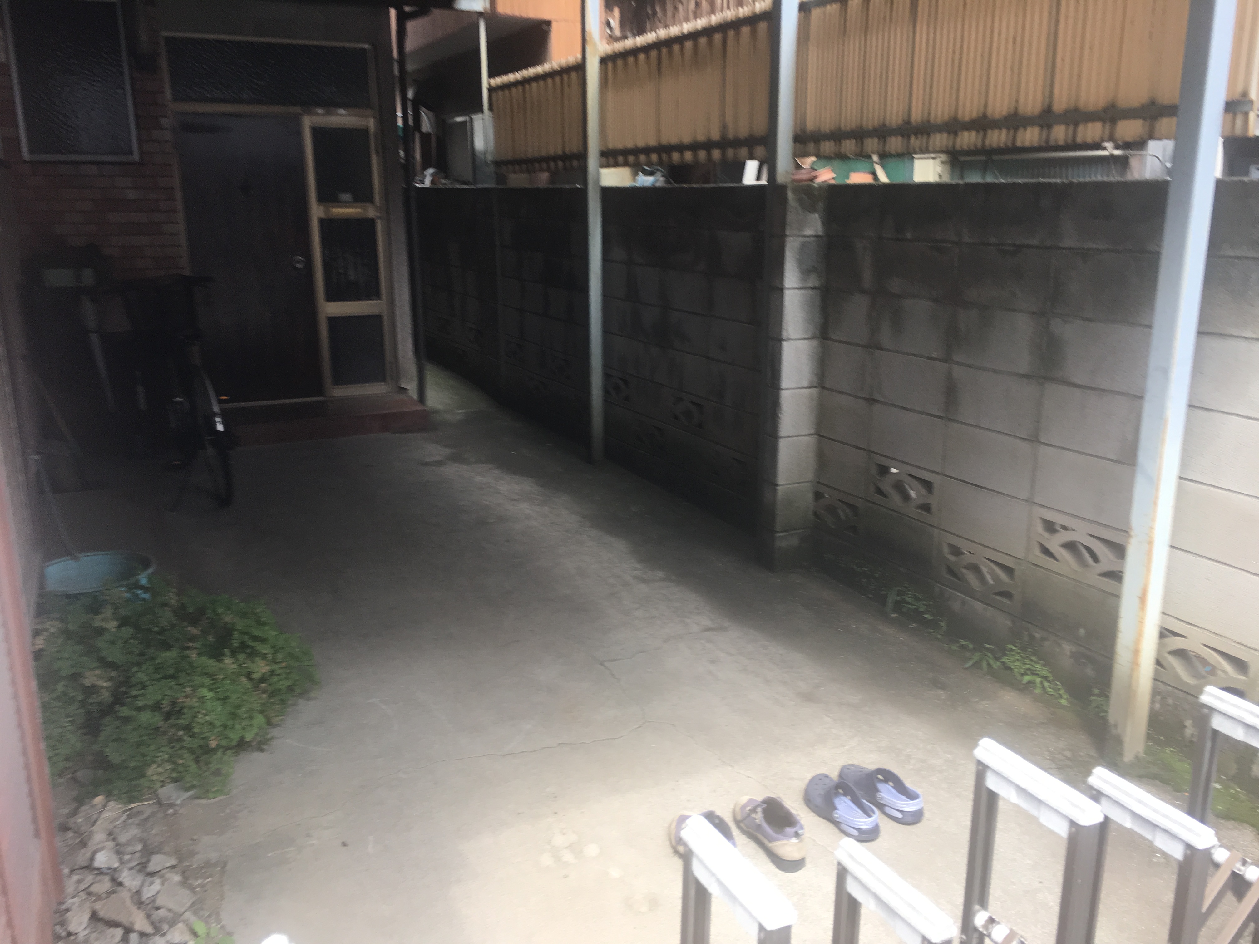 やはり、汚れたサンダルが干してあるんでしょうねぇ。私もサンダルの汚れをホースで洗い流して干すことがよくあります。でも普通、裏庭に干しますよねぇ?