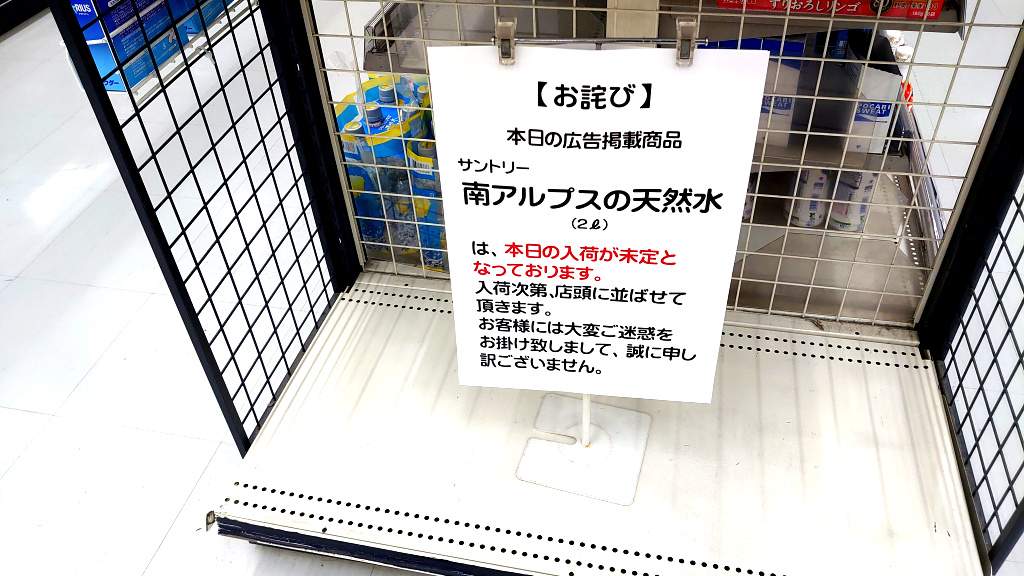 次女がバイトしてるコンビニでは、いつもの60倍程水を入荷しているらしいのですが、全部売り切れてました。