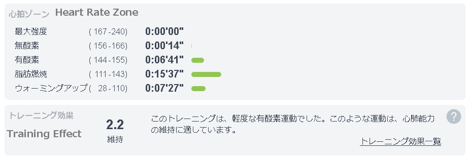 5分ウォーミングアップ、心拍数:~109 bpm