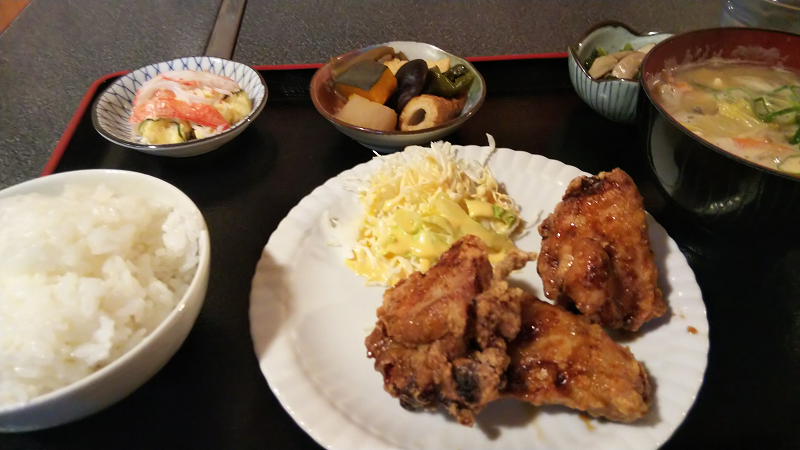 唐揚げ定食をいただきました。まさに家庭の味で、おいしかったです。