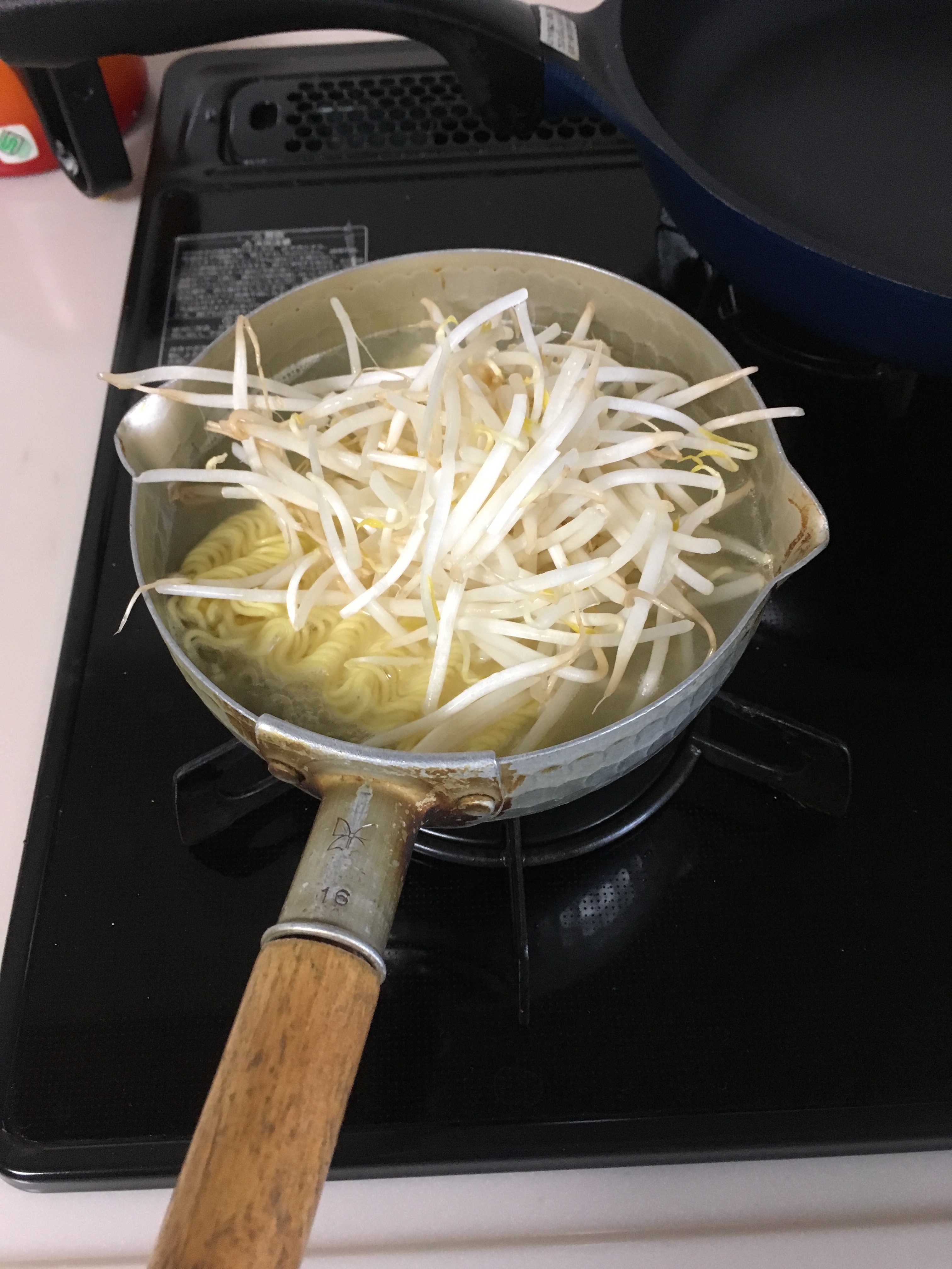 いつも通り、もやしと一緒に3分くらい煮ます。