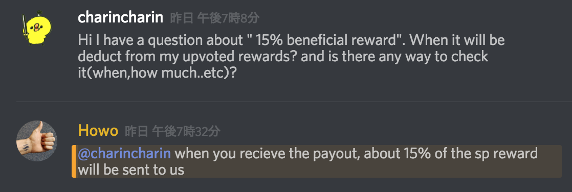 ちなみに、steempressのdiscordでいつ送金が送られるか確認したところ、