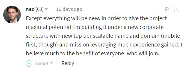 会社自体も全く新たに立ち上げ、Ned氏はSteemitとそのベンチャー、両社のCEOとなるそうです。(現在、新会社・ドメイン・モバイルアプリを構築中)
